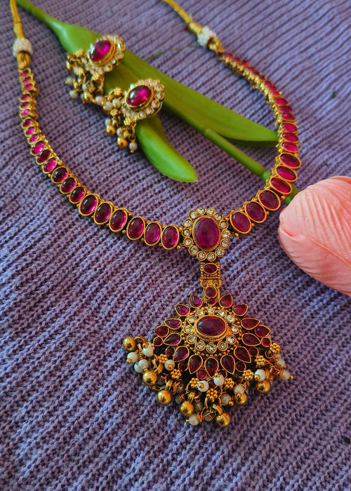 Kemp(Red) Stone Necklace & Earring